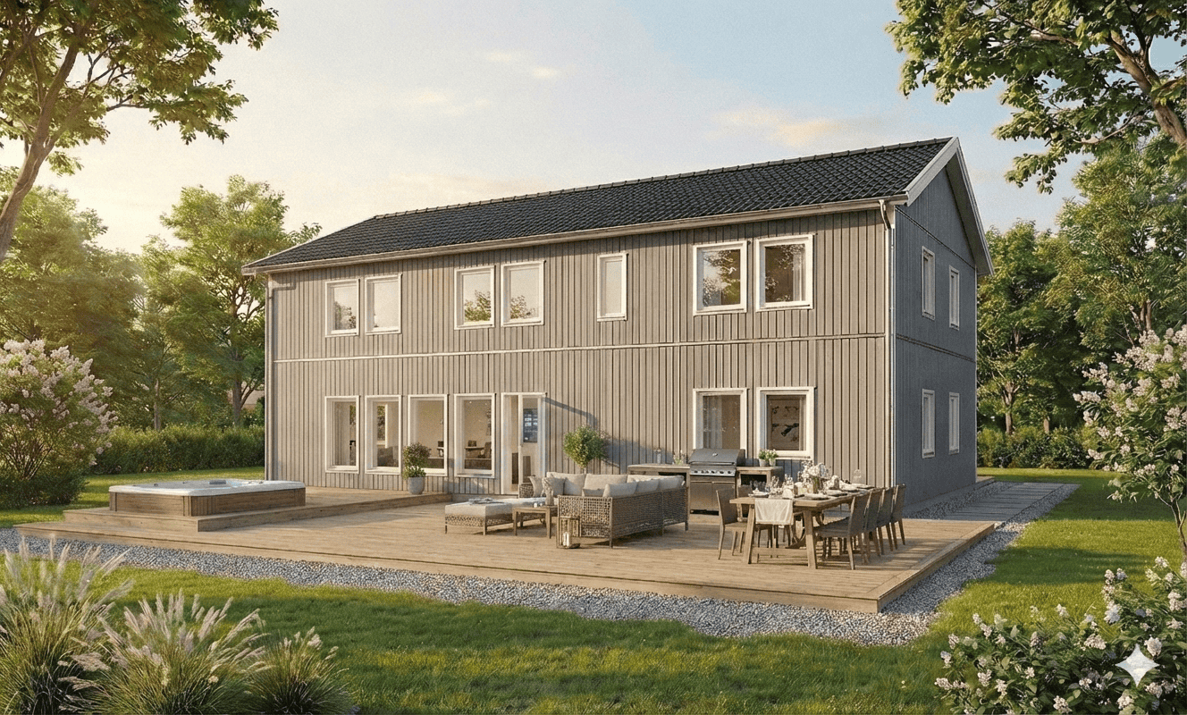 Vores byggesæt er produceret i Sverige med materialer fra førende leverandører. Med vinduer og døre monteret i vægmodulerne, er det let og hurtigt at bygge. Her kan du læse om, hvad der indgår og hvilke tilvalg du kan gøre. Kontakt os, hvis du har nogle spørgsmål.