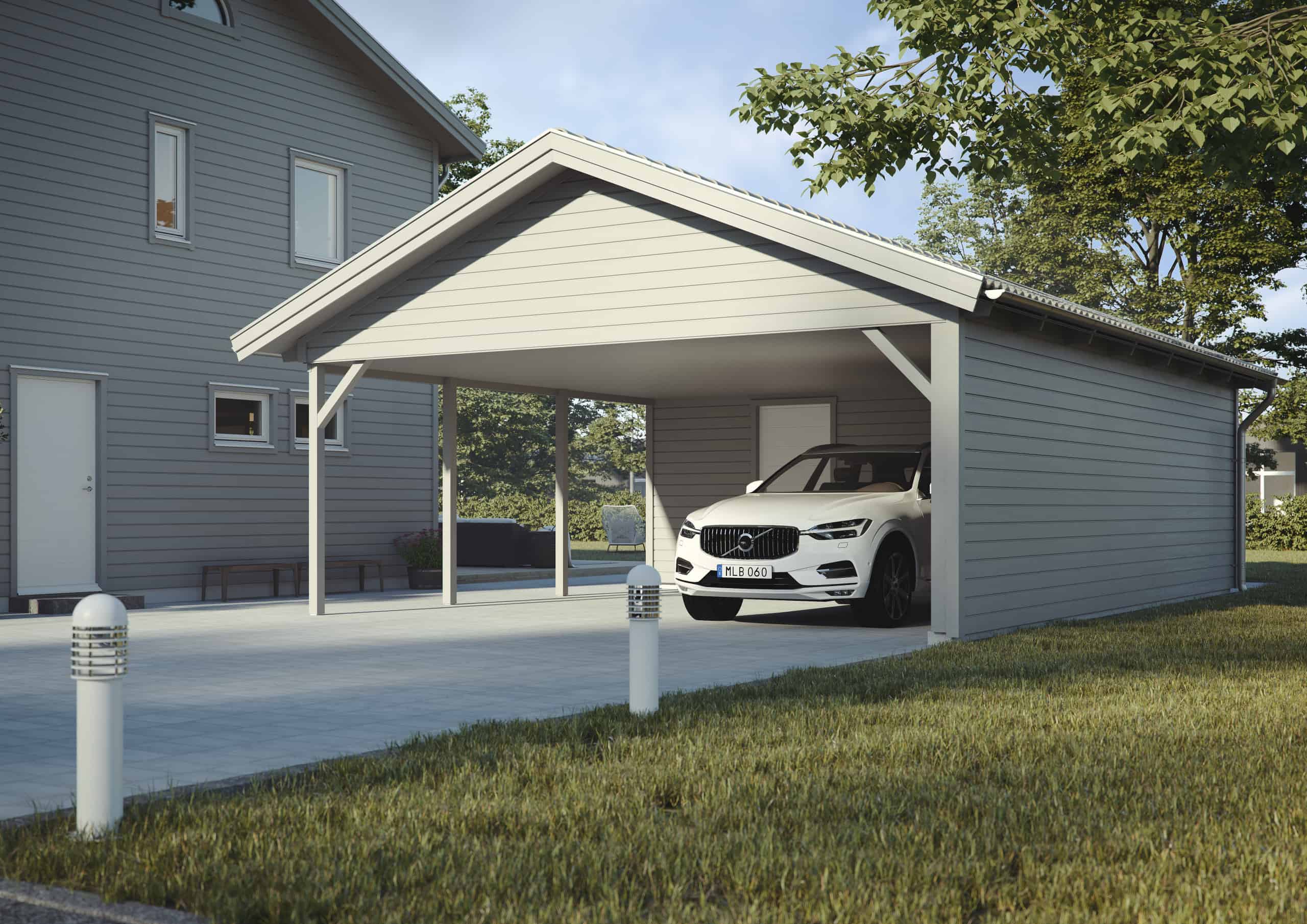 Autokatokset toimitetaan elementtijärjestelmän osina (seinäelementteinä), joiden leveys on useimmiten 1200 mm, joten niiden käsittely on helppoa niin rakentajille kuin niille, jotka haluavat pystyttää rakennuksen itse. Autokatoksesta on saatavana useita vakioleveyksiä, ja siitä saa käytännössä lähes niin pitkän kuin haluat. Valittavana on kolme seinäkorkeutta (2,23, 2,53 ja 3,0 m), ja valitsemalla sopivan sokkelin korkeuden saat lisää kattokorkeutta. Millaisen autokatoksen haluat? Autamme sinua suunnittelemaan tarpeisiisi sopivan autokatoksen. Kätevän rakennusjärjestelmämme avulla voimme suunnitella useita erilaisia ratkaisuja autokatokseen: yhden tai kahden auton katoksen, autokatoksen useille autoille, autokatos-autotalli-yhdistelmän, autokatoksen, jonka yhteydessä on varasto, tai autokatoksen, jonka yhteydessä on sekä autotalli että varasto. Sinä päätät, miltä autokatoksesi näyttää. Saat halutessasi meiltä myös perustustöiden ja pystytyksen hintatiedot. Kokeile unelmiesi autokatoksen suunnittelemista iArchitect-suunnitteluohjelmassamme, niin saat hinnan suoraan ohjelmassa, tai ota yhteyttä, niin autamme mielellämme.