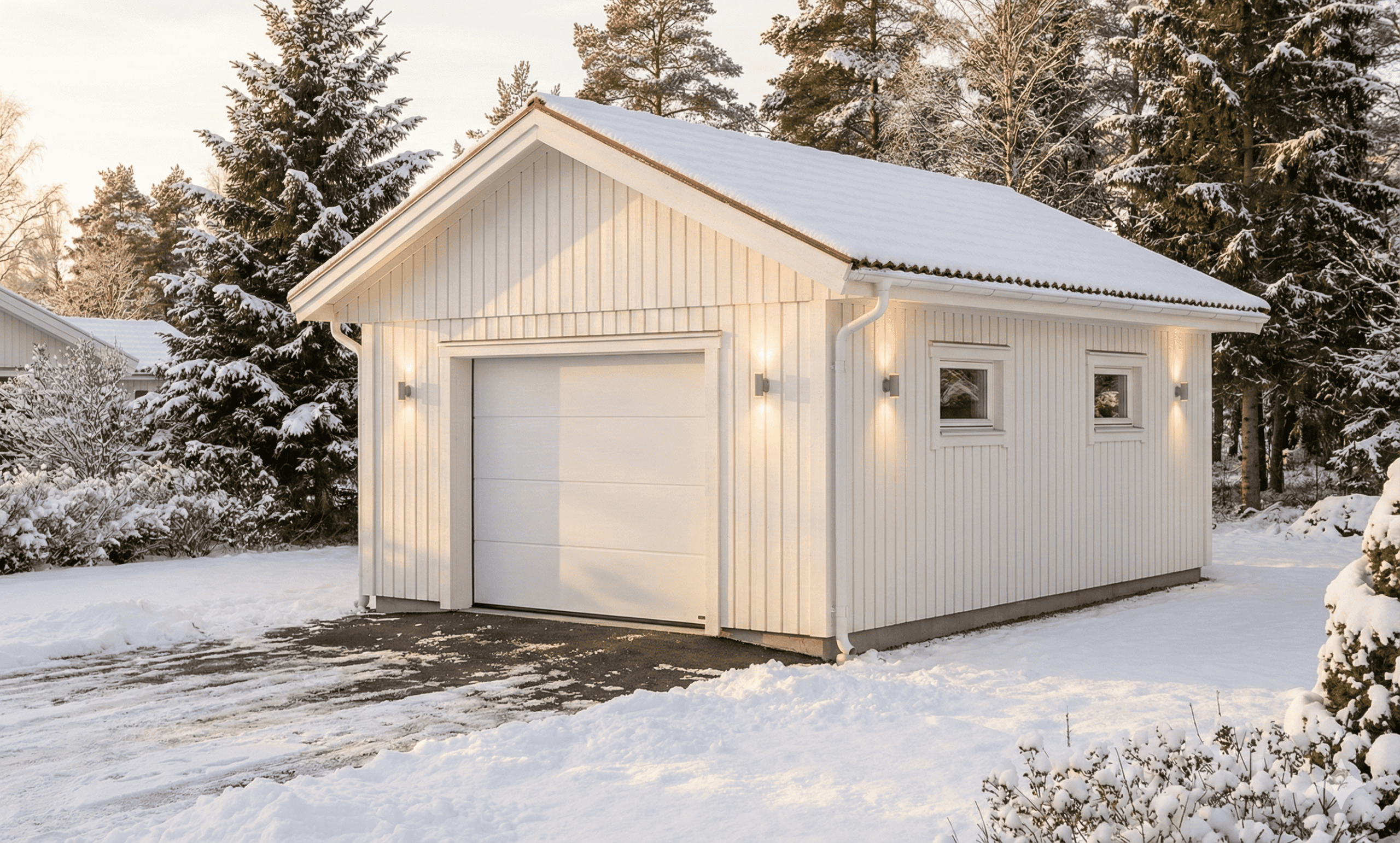 Ett attefallsgarage är en fristående komplementbyggnad som följer attefallsreglerna. Inom detaljplanerat område får du bygga upp till 30 kvm attefallsgarage, och utanför detaljplan kan du bygga upp till 50 kvm. Den största fördelen är att du kan bygga utan att söka bygglov eller göra en bygganmälan, det är bara att sätta igång. Läs mer om attefallsreglerna här