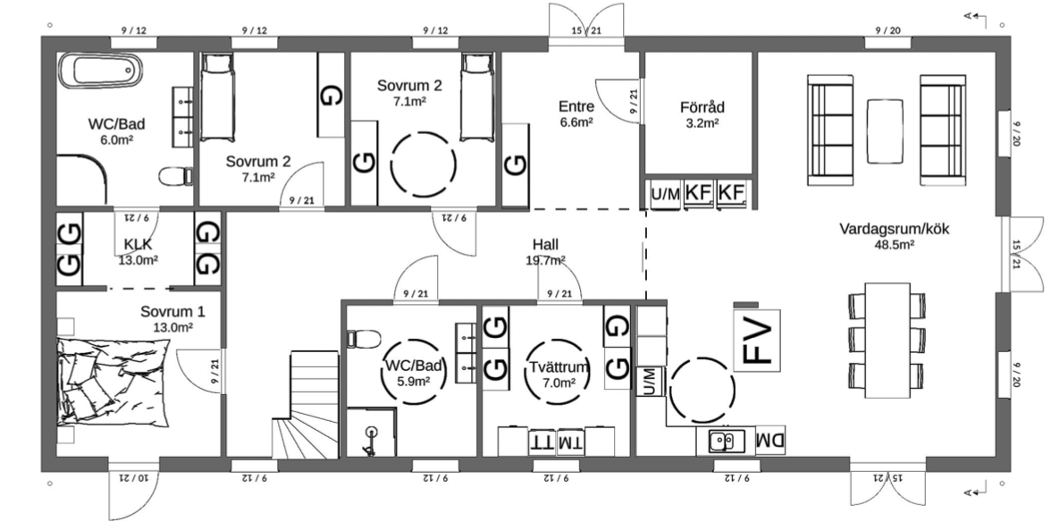 Det råder lite av en isoleringshysteri i husbranschen. Ofta pratar man bara om väggtjocklek och försöker överträffa sina konkurrenter genom att ha tjockare väggar. Mer isolerade väggar kräver grövre reglar för att ge plats åt isoleringen. Tjockare väggar medför att du förlorar golvyta och det är inte säkert att du räknar hem den lilla energibesparingen under din livstid. För att klara de hårda energikrav som har satts upp i vår bygglagstiftning måste din byggnad klara gällande energiberäkning. Denna kalkyl är kraftigt beroende på vad du har för värmesystem. Har du exempelvis bergvärme behöver du inte alls lika mycket isolering som om du har en frånluftsvärmepump. Var noga med att optimera tjockleken på isoleringen utifrån den uppvärmningslösning du har i stället för att maximera isoleringen och förlora golvyta och på så sätt betala mer för ditt hus. Vill du ha hjälp med hur du skall tänka gällande isolering? Läs mer om energireglerna eller kontakta oss så guidar vi dig.