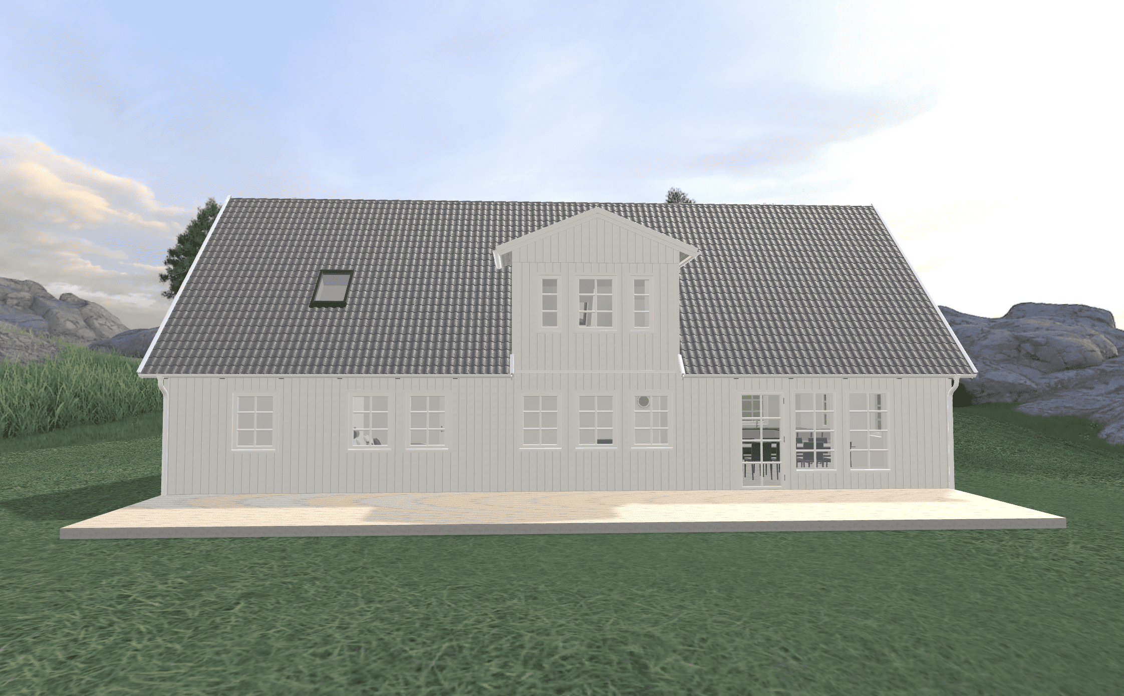 Ett familjehus i 1,5-plan med 5 sovrum och gott om förvaring inplanerat. Här erbjuds ni kök och vardagsrum i en stor öppen lösning som ger plats åt vardagens familjeliv men också middagar och fest. Takkupan är ett vackert inslag i fasaden och ger extra utrymme på övervåningen.