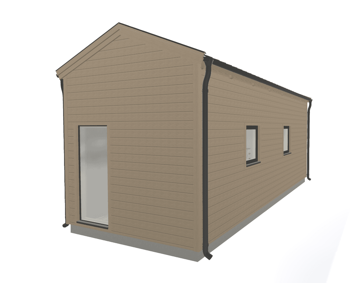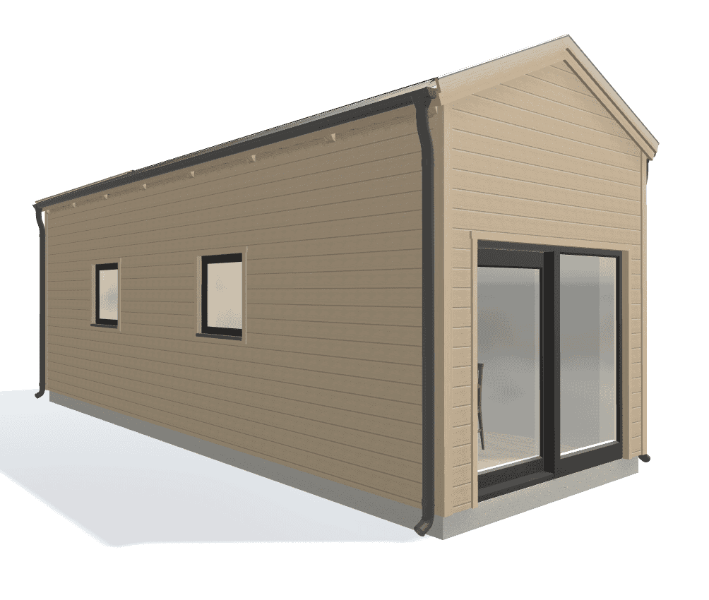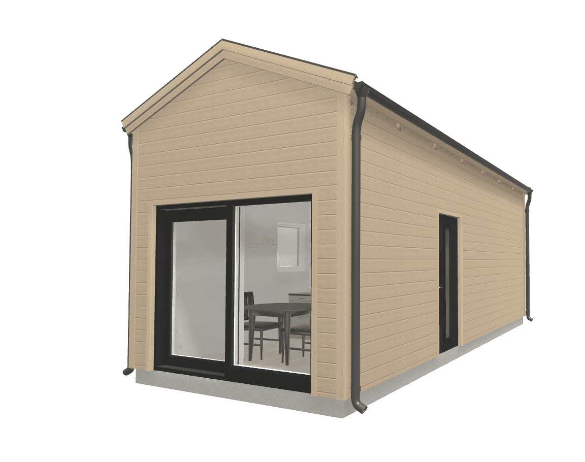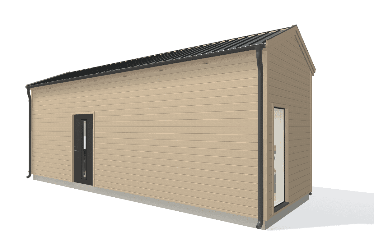 Bygg ett attefallshus med en arkitektur som lämnar intryck. Denna modernt utformade Attefallare som klarar reglerna för 30 kvm attefallshus är en häftig byggnad med en spännande planlösning. Detta långsmala attefallshus passar utmärkt till en tomt som kräver en smal attefallsbyggnad.