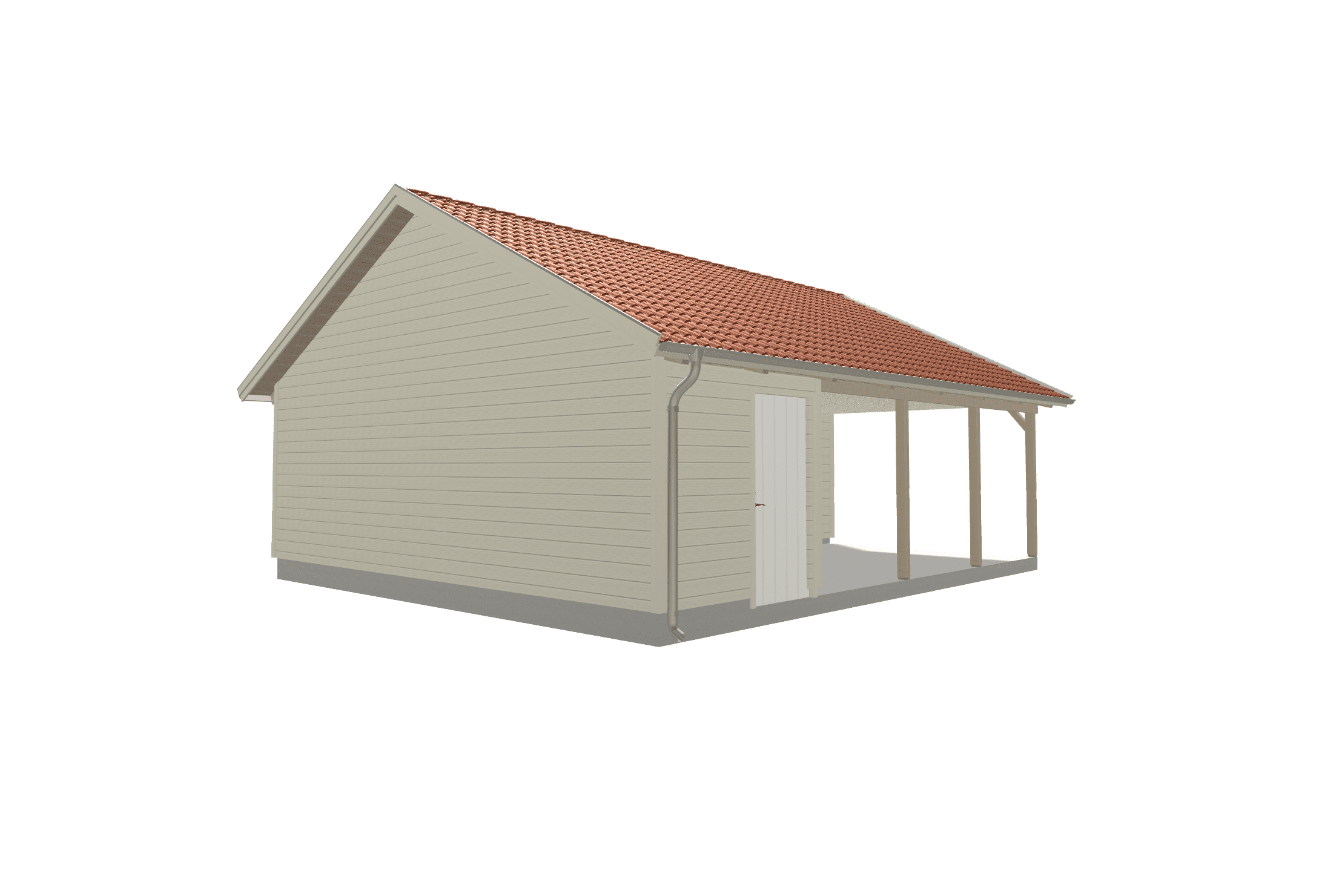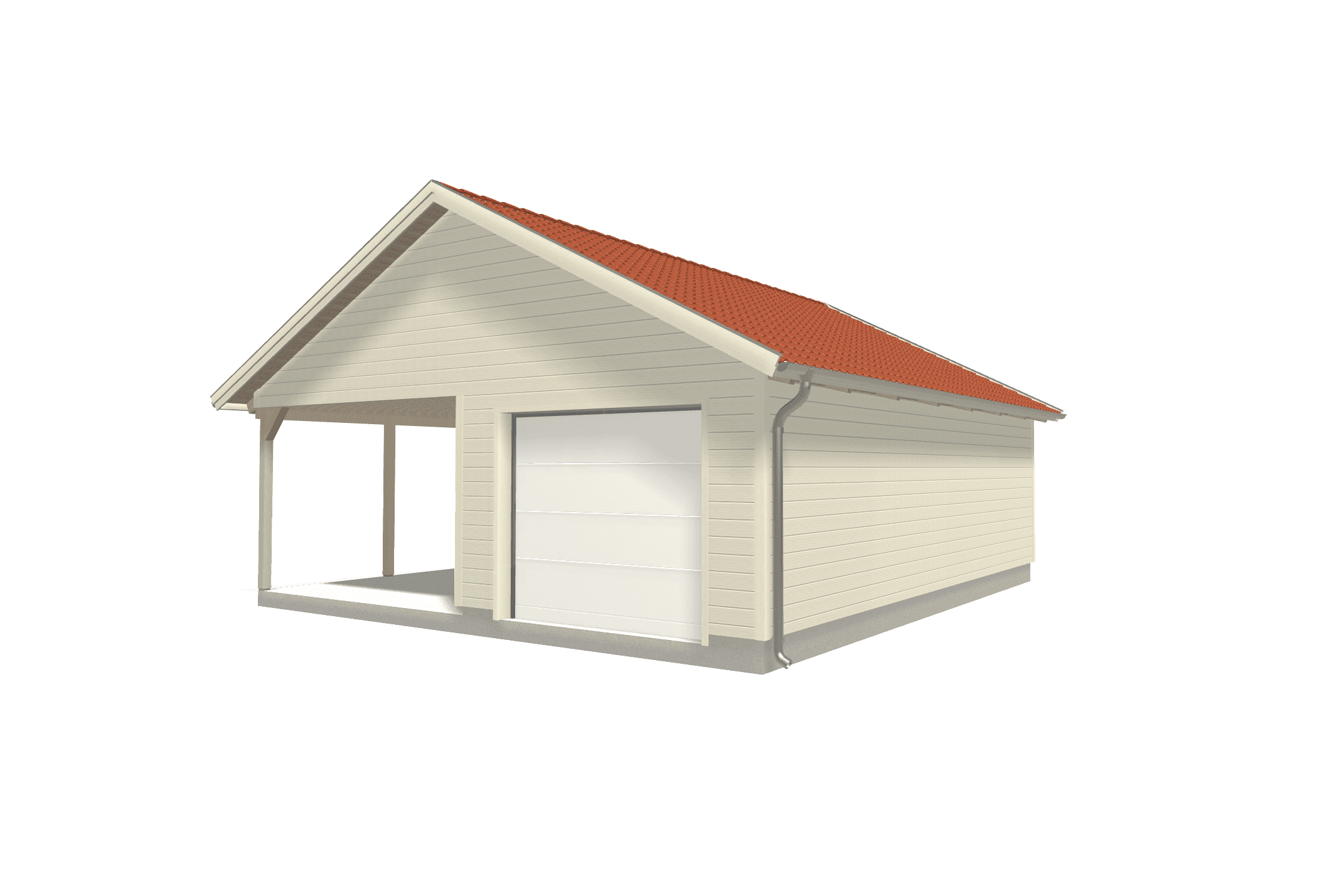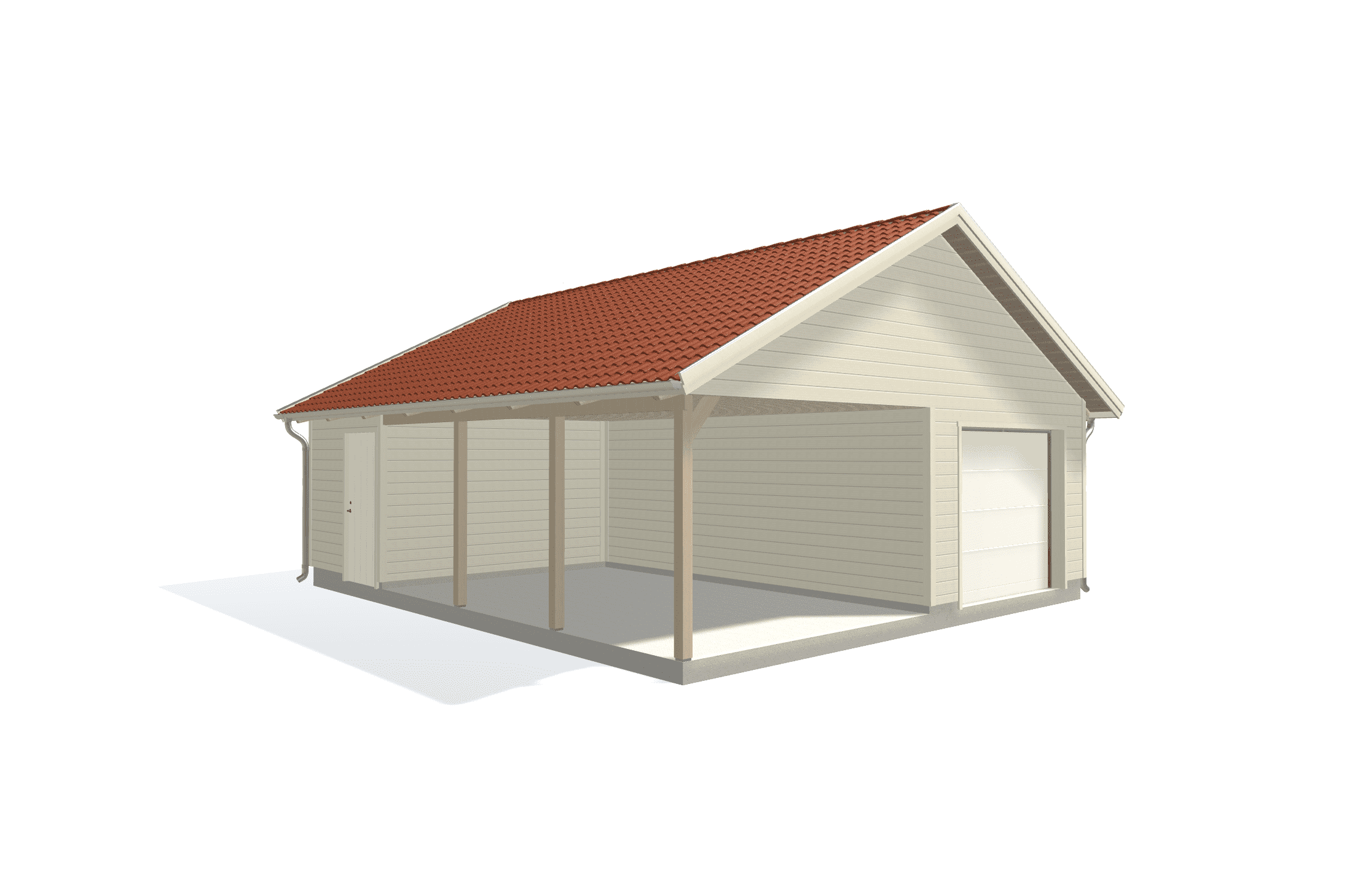 Plats för bil, båt, förvaring. Detta garage med carport och förråd har många möjligheter och är en populär modell för de som vill ha en flexibel lösning. carporten rymmer högre fordon och den är också lättillgänglig. I garaget står din bil skyddad från väder och vind och ett förråd behöver man alltid. Det finns också möjlighet att ha en verkstadsdel med verktyg i garaget.