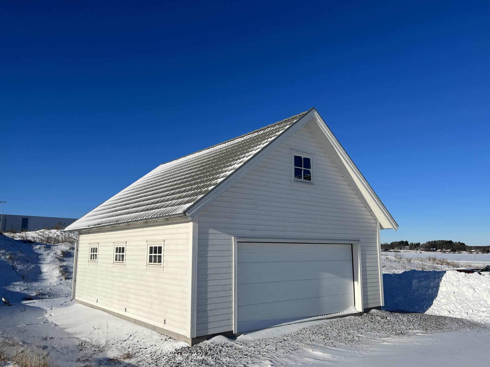 Garage med loft är en fantastisk byggnad där du får både utrymme till bilar och kanske lite verkstad tillsammans med en övervåning som du kan inreda som du vill. Detta garage med loft är faktiskt vårt visningsgarage i Vårgårda där vi tar emot kunder som vill se hur våra garage ser ut. Det har blivit en populär modell tack vare de fina ytorna och den klassiska utformningen. Spröjsade fönster och liggande panel gör detta garage till ett smycke till din tomt.