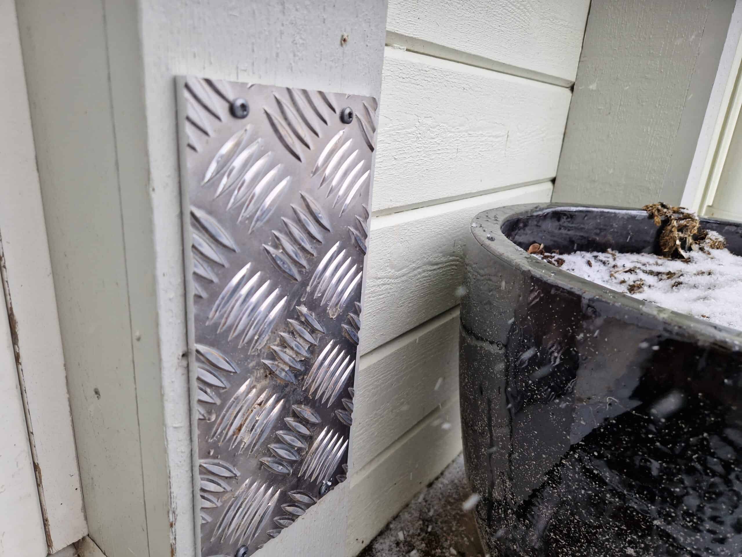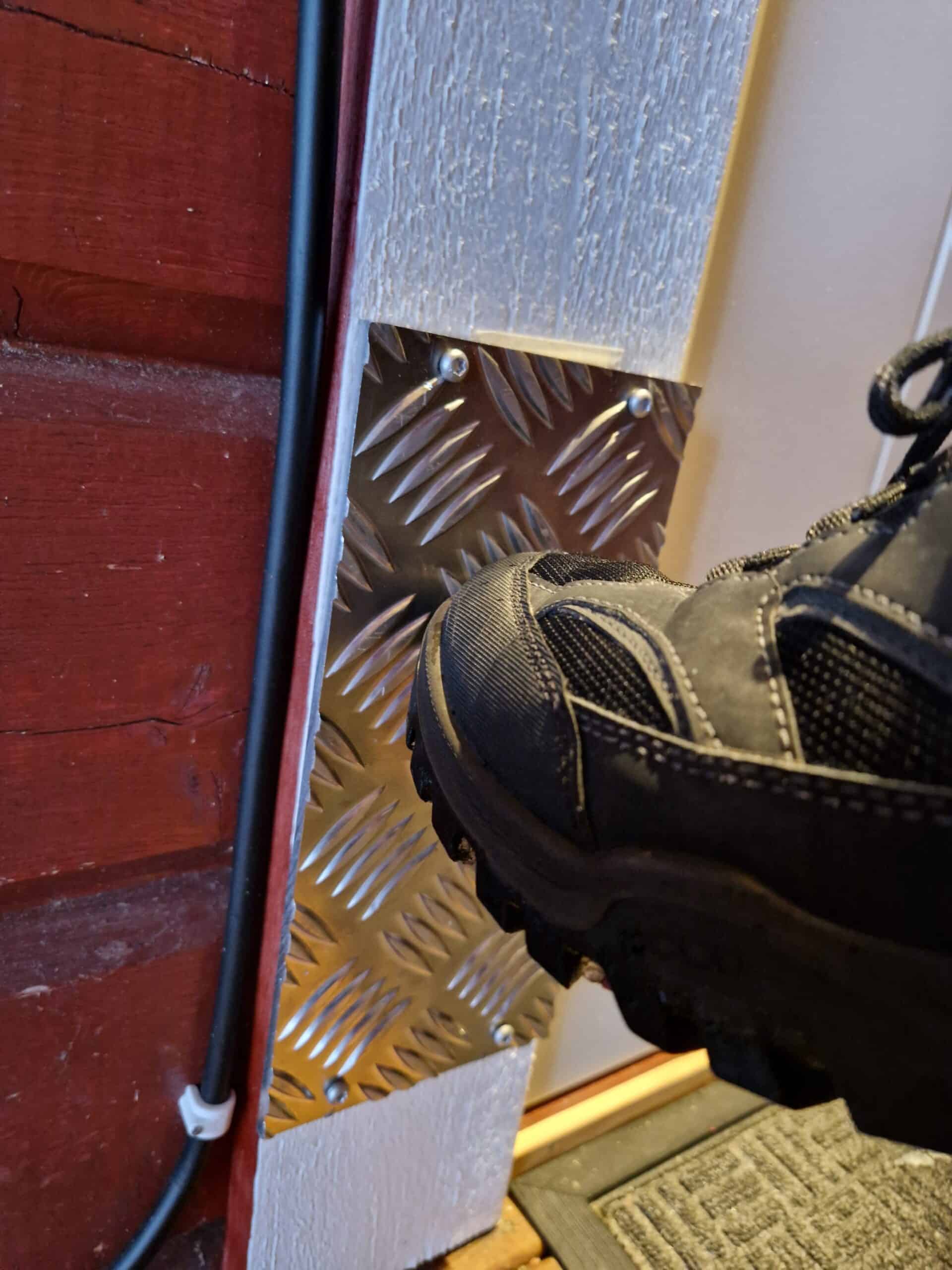 Plåten funkar även fint för vanliga skor när man vill sparka bort oönskat material innan man går in i huset.