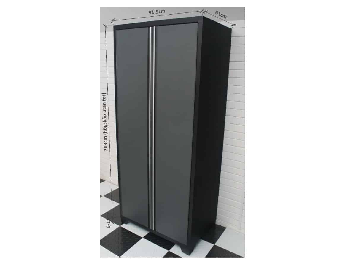 Verktygsskåp som högskåp och är tillverkade i 100 % stål och skåpen levereras monterade med en reptålig pulverlackfinish. Dessa högskåp har fyra stycken flyttbara hyllplan som tål en belastning upp till 45 kg gör att du kan förvara lite större grejer och maskiner i skåpet. Dörrarna är försedda med magnetiska dörrlås som håller kvar dörrarna ordentligt.
