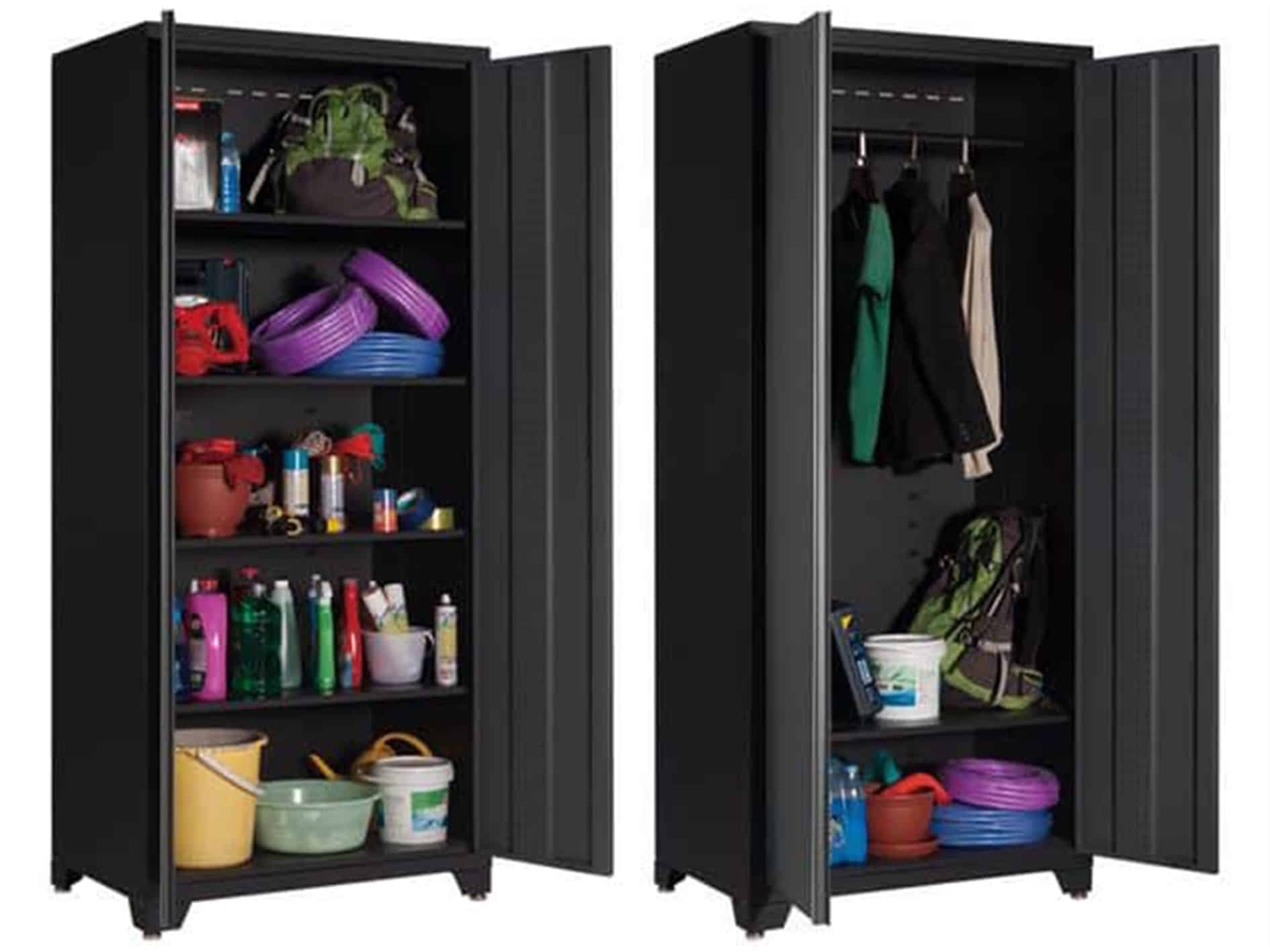 Skåpet ger dig ett snyggt förvaringsutrymme för exempelvis verktyg, maskiner, biltillbehör, trädgårdsprodukter, sportutrustning mm. Följer även med en klädstång så du kan använda övre delen av högskåpet till hängande kläder.